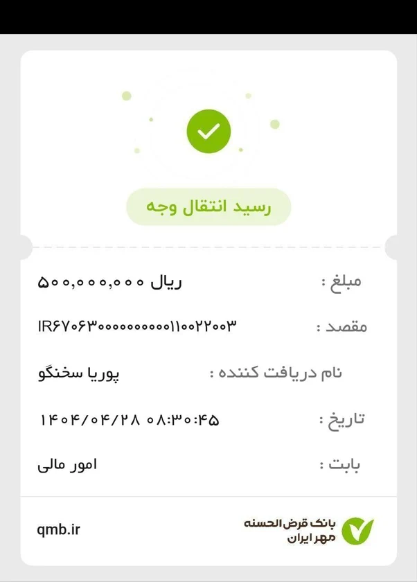 تاریخ پرداخت 1404/04/28 🕤