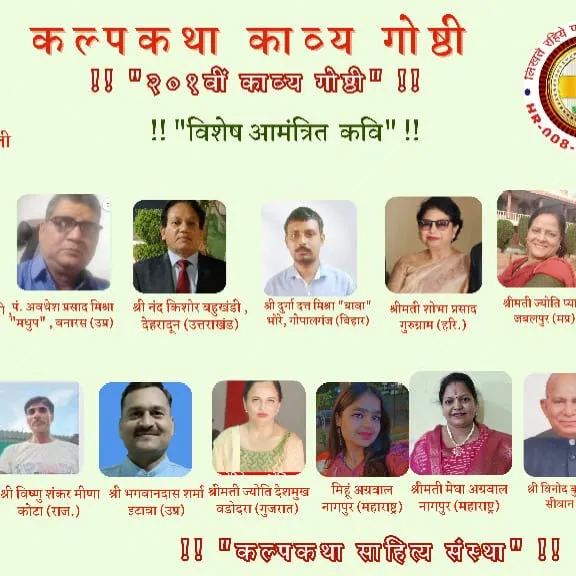 देशप्रेम, हिन्दी भाषा, सद साहित्य एवं सनातन संस्कृति हेतु कृत संकल्पित कल्पकथा साहित्य संस्था की संवाद प्रभारी श्रीमती ज्योति राघव सिंह ने बताया कि २०१वीं ऑनलाइन काव्यगोष्ठी में पिता के प्रति सम्मान और अहमदाबाद विमान दुर्घटना में प्राण गंवाने वाले दिवंगतों को श्रद्धांजलि की काव्य रचनाएँ प्रस्तुत की गई।
