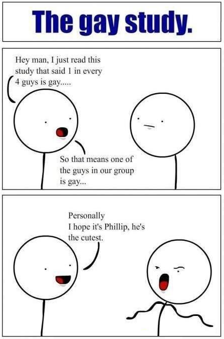 Hay man, I just read this study that said 1 in every 4 guys is gay.....