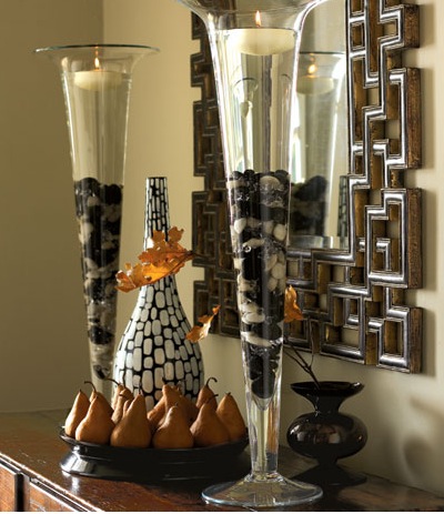 10. Add Unexpected Accessories- Almost anything can serve as an accessory, and that goes for found objects and household items that cost practically nothing. Seashells and driftwood collected at the shore create a lovely natural grouping. A bowl filled with crisp green apples lends a bright pop of color to just about any surface, and a stack of vintage hardbacks adds height, dimension and character to an occasional table.