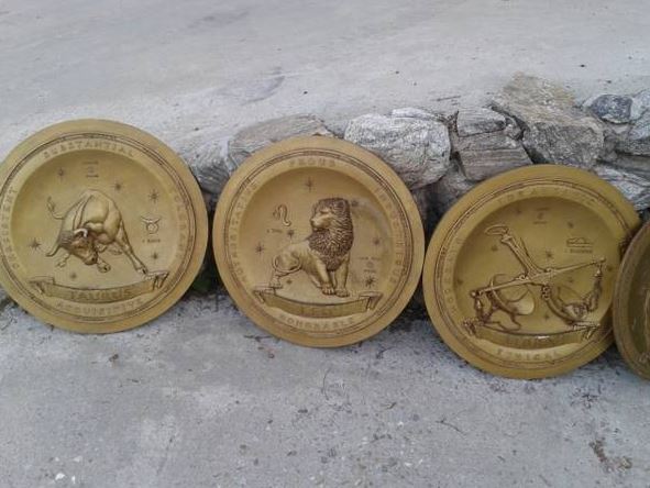 I have these unique 2 foot diameter size three dimensional wall placards - 10 of them all different horoscopes.