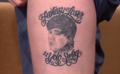 And apparently this is what the losers of Nebraska's fantasy football games got as their prize. Justin Beiber uglified!