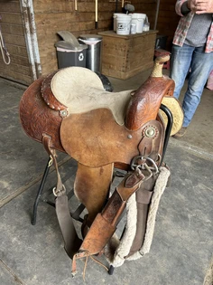 Fantastic saddle by maker D.R. Hoover.used 15 inch seat. In fantastic condition, great heavy duty working saddle, fits horses like it’s supposed to!