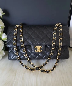 $2400 - Authentic Chanel Classic Medium Double Flap - Black Caviar - Gold Hardware (GHW)