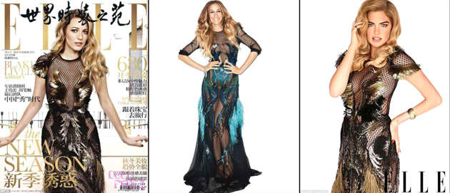 Three Hollywood stars wore the same dress for different magazine covers. Namely, Sarah Jessica Parker, Blake Lively and the latest is Kate Upton. The magazines in charge are Harper's Bazaar, Elle China, and Elle.
