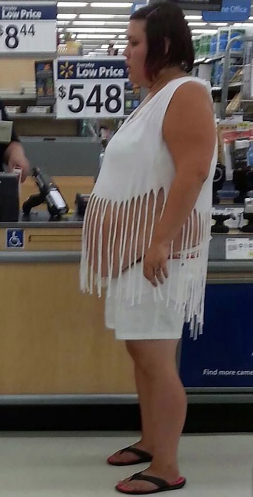 Sometimes people get too darned dressed up to go to Walmart! This girl should tone it down a bit and maybe wear a burlap bag and make a real fashion statement