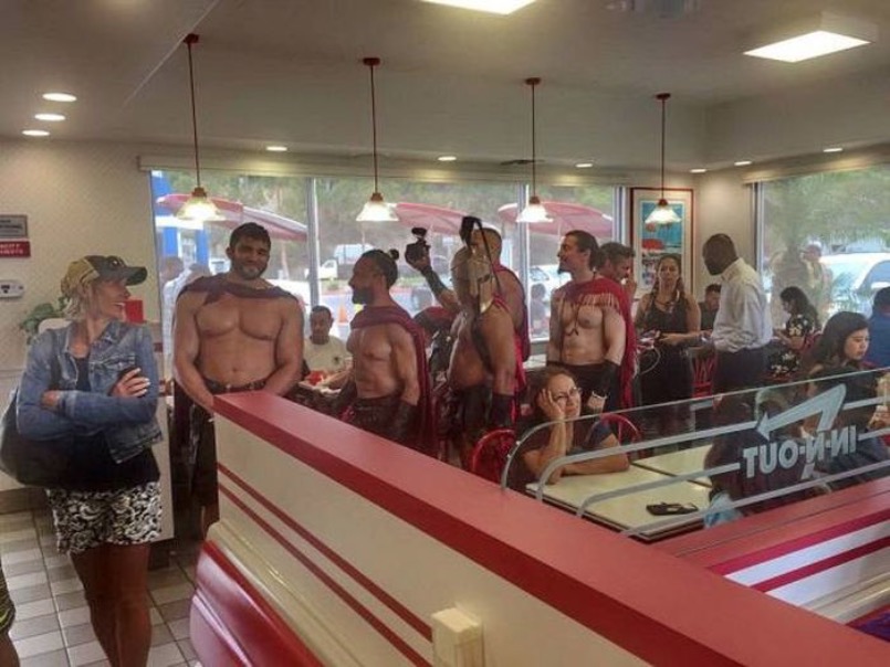 300 Spartans show up for some hamburgers. I guess they need fuel to fight the Persians.