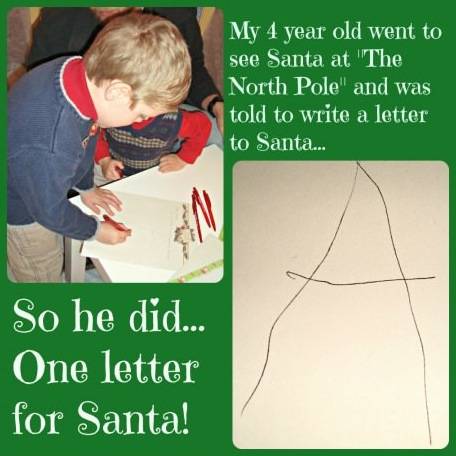 My 4 year old went to see Santa at the North Pole and was told to write a letter to Santa... So he did... One letter for Santa!