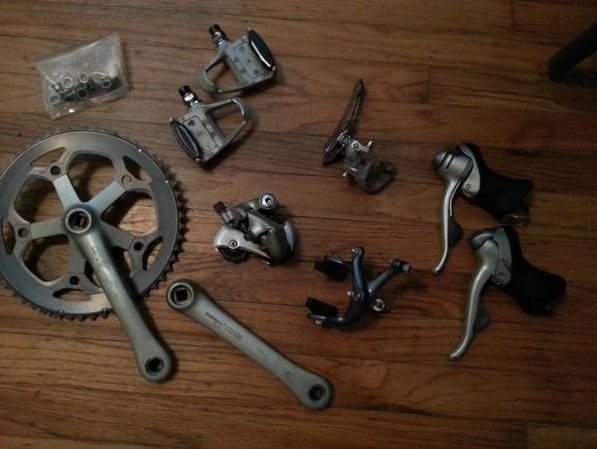 shimano 105 group 8 spd, not all the same series , but all compatible.missing rear brake and small chain ring. call/text (916)813-2537