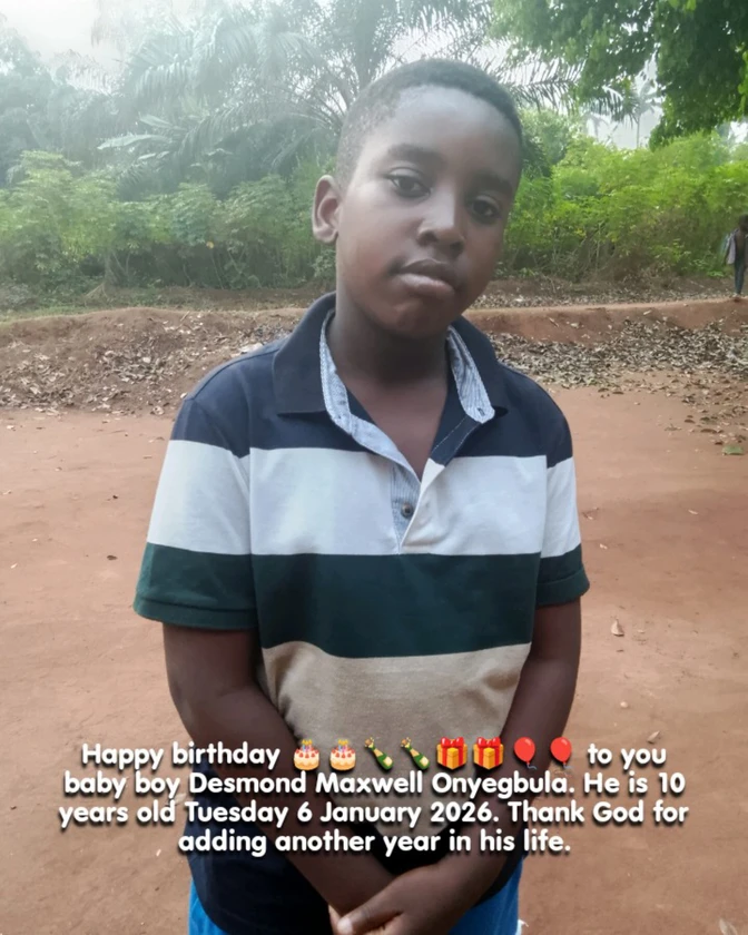 A big happy birthday πππΎπΎππππ to baby boy Desmond Maxwell Onyegbula. he is 10 years old Tuesday 6 January 2026. Thank God for adding another year in his life.