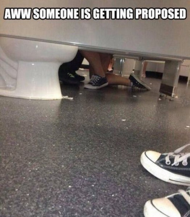 Aww someone is getting proposed. Chivalry isn't dead. He is down on one knee...or is it she?
