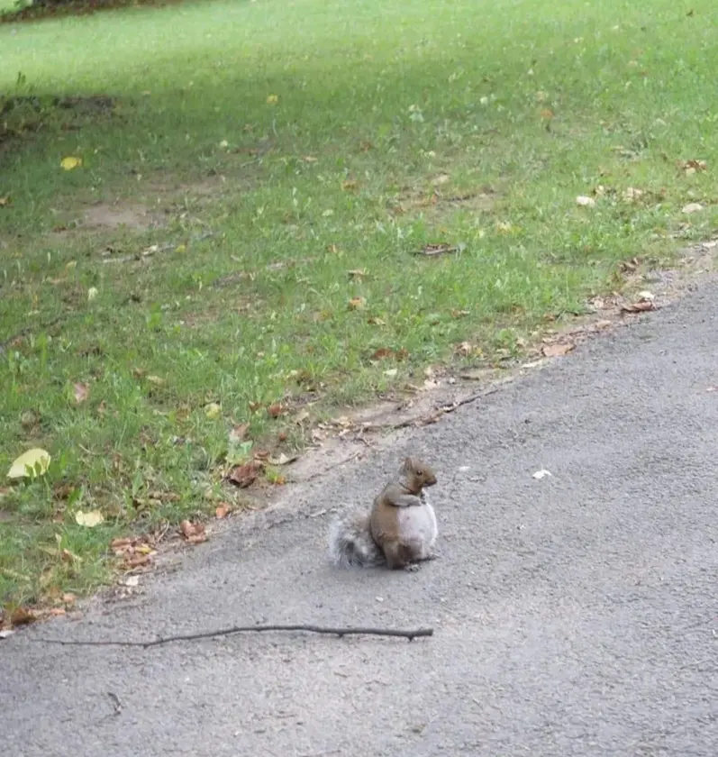 A woman took this picture of a pregnant squirrel for the first time. I’m not sure what I expected but this exceeds all of it. That Tummy!