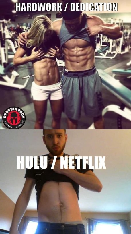 Hard work and dedication makes washboard abs. Hulu and netflix create a big belly