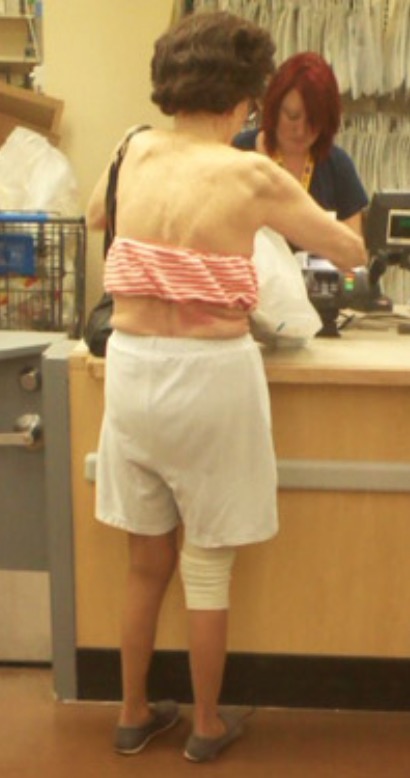 Looks like she's all wrapped up there. She's got an injury on her knee and one around her torso. Now all she needs is her prescriptions.