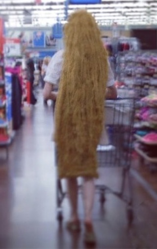 I bet the conditioner this woman is putting in her hair really makes for great product. She probably started out with just a few strands of hair.