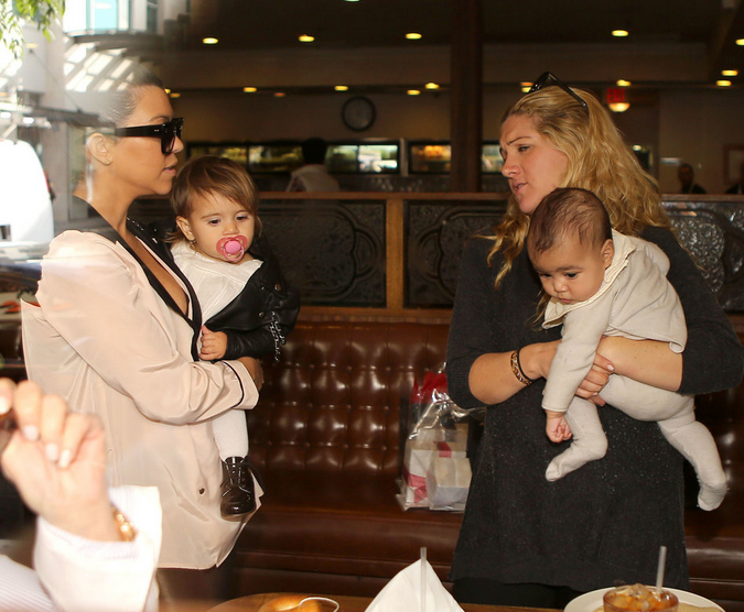 Kim Kardashian and Kourtney Kardashian had a girls' day out in LA on Monday with their daughters, North West and Penelope Disick. Kim pushed North in her stroller and later helped Kourtney with Penelope by carrying her around in her arms during one of the sisters' many stops. When she wasn't tucked in her stroller, North hung out on a friend's hip during lunch. Later that day, Kim captured a photo and posted a smiley photo of North to go along with the other snaps she's shared of her daughter since her birth in June. The Kardashian family has been going through a bit of a rough time as they head into the holidays. Kim and Kourtney's sister, Khloé Kardashian, recently filed for divorce from her husband, Lamar Odom, following his public battle with drug addiction. Rumors of the couple's marriage troubles had been circulating for months. Meanwhile, Kim and Kanye are currently locked in a legal battle with Chad Hurley, one of the founders of YouTube. Chad had been invited to Kanye's proposal to Kim in San Francisco back in October and posted a video of the moment on his new video-sharing site, which Kim and Kanye said violated the confidentially agreement he had signed. The couple are currently suing Chad, but the entrepreneur recently asked a judge to dismiss the case, alleging that he was tricked into signing the agreement and was told that it was only a release form. (The proposal was being filmed for Kim's reality show.)