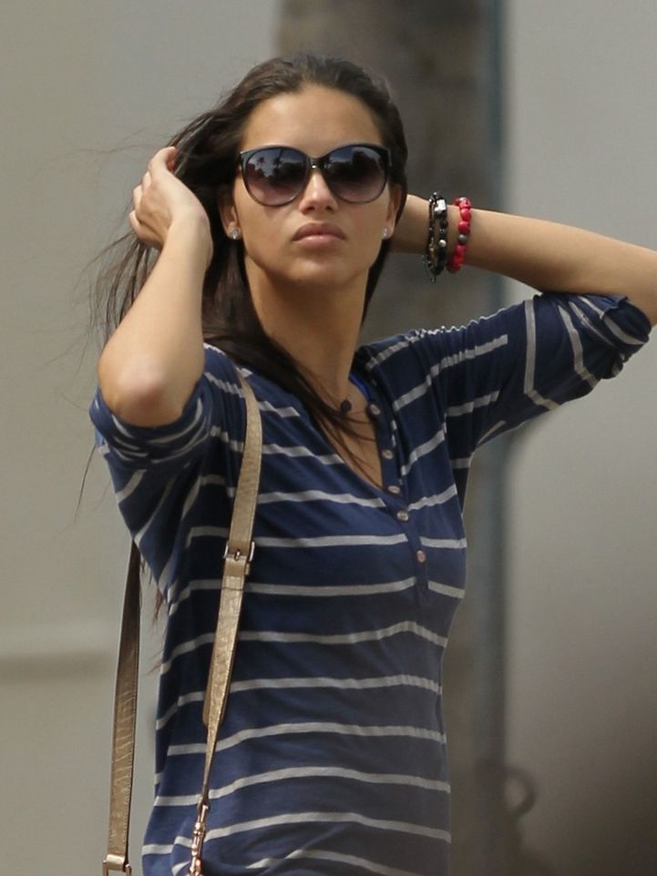 Adriana Lima stops to fix her hair while strolling around town on Monday in Miami, Florida.