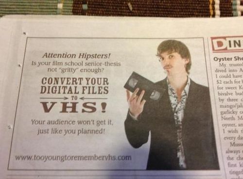 DVD's and digital files are too mainstream! Hipsters need alternative means of watching their movies! They want to go back to VHS!