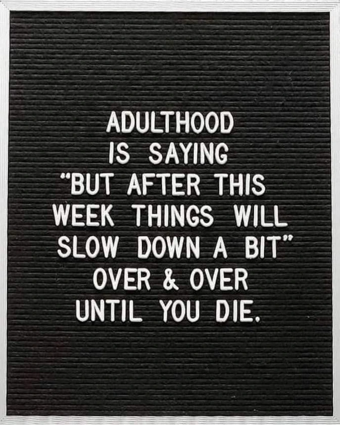 Saying "but after this week things will slow down a bit" over and over until you die.