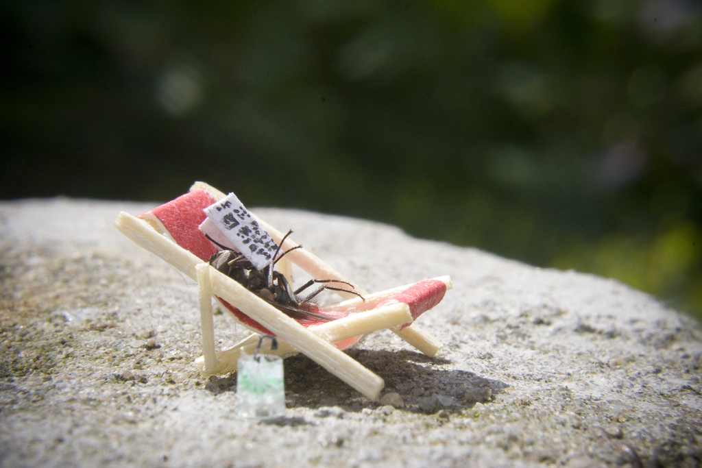 Belgian web designer Nicholas Hendrickx posted The Adventures of Mr. Fly series on Flickr which featured Mr. Fly (who he assures is very much alive but we can't figure out how he gets the fly to actually pose) doing incredible shots with different minuscule props.