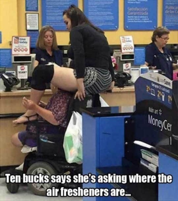 Ten bucks says she's asking where the air fresheners are...