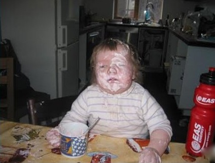 This little guy really has a lot of icing on his face wonder if he can eat it up and get it all of on his own? Looks delicious!