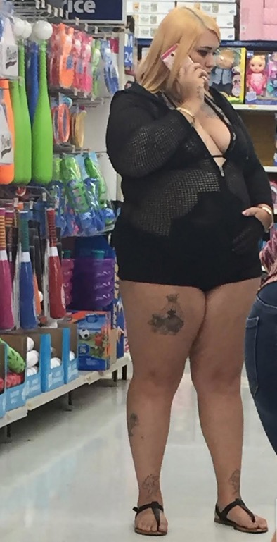 All black evening wear at Walmart can't be beat. With the money you save they'll translate that savings into giving you less material. With the extra money you can buy more tattoos of money bags.