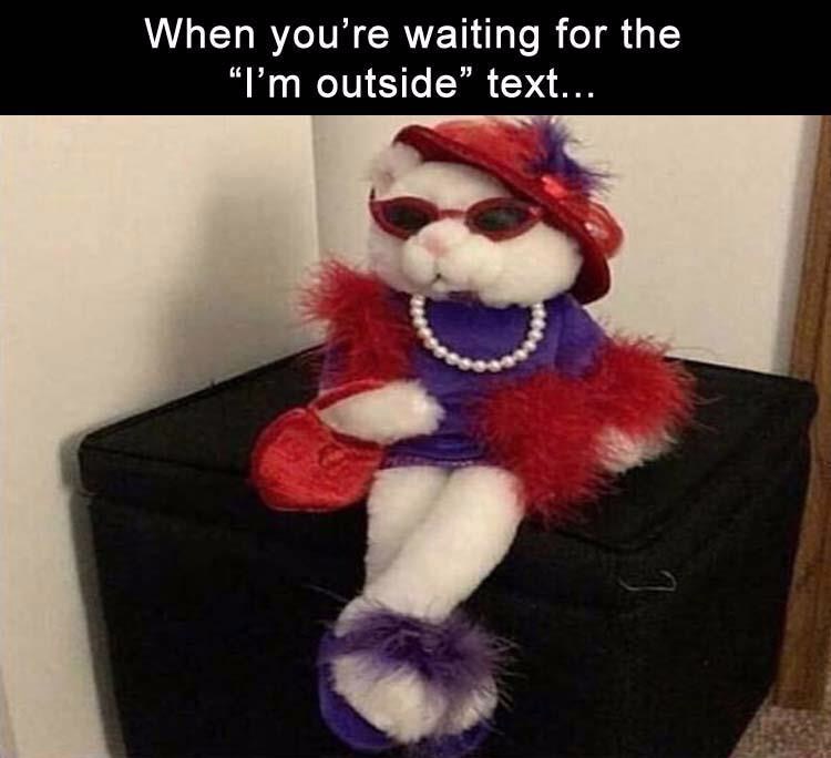 All dressed up and ready to go. You're waiting for the "I'm outside" text.