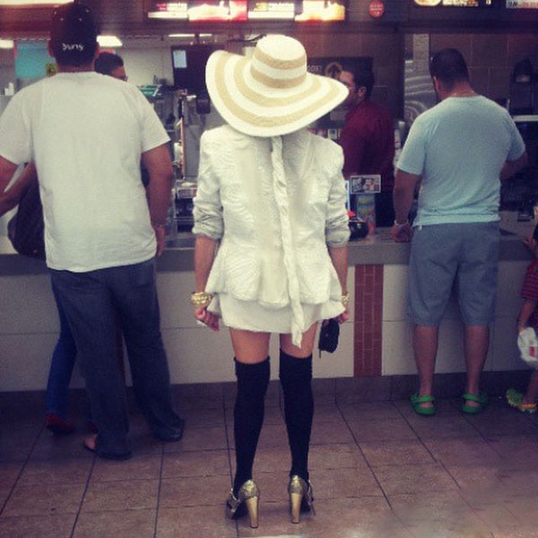When you are going to fashion fail might as well fail in a big way. Take this woman for example. She looks like she appeared on gone with the wind. I wish she would have stayed gone.