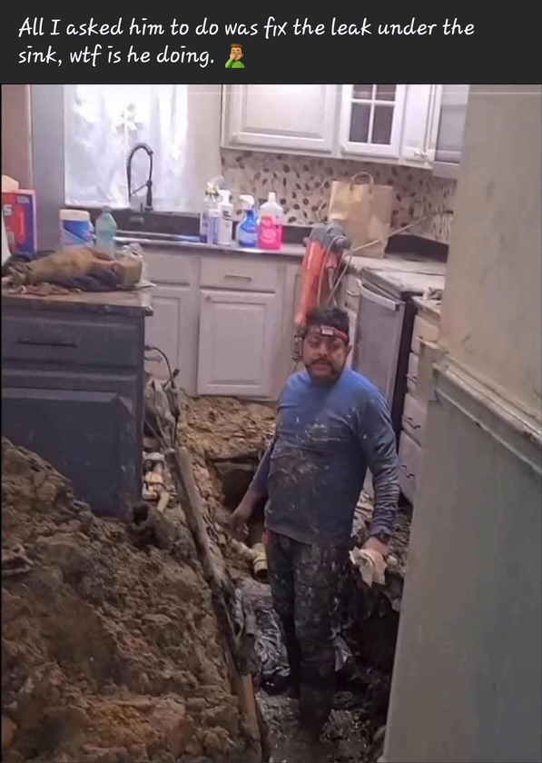 All I ask him to do was fix the leak under the sink, WTF is he doing 🤦♂️