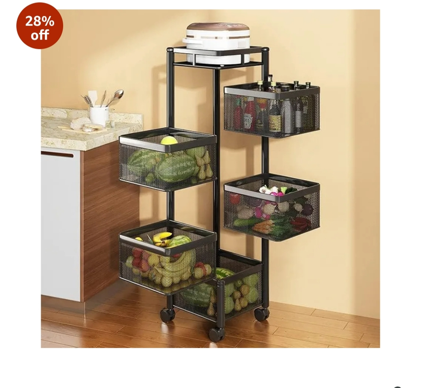 ALLWIN HOUSEWARE W Multi-Purpose Alloy Steel 5 Layer Trolley Storage Organizer And Kitchen Accessories Items For Kitchen Storage Rack Square Design Fruits & Vegetable Onion Potato (Square, 5 Layer) https://amzn.to/44oZv8W