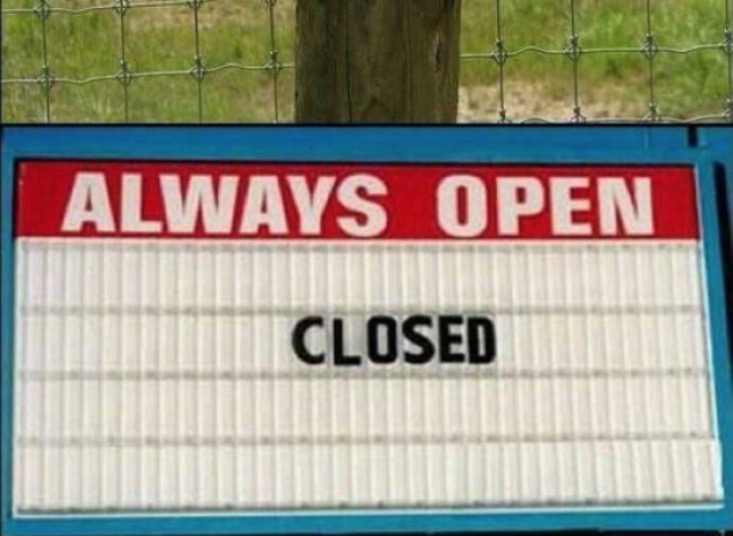 Always open? Looks like we might be closed now. Nothing lasts forever...
