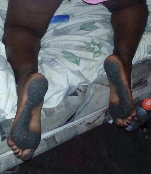This person doesn't know the first thing about good hygiene. Those feet look like they walked through a dirty garage floor before bed. Gross!