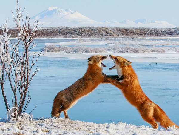 In a middle of Washington we seen this Amazing shot of foxes sparring