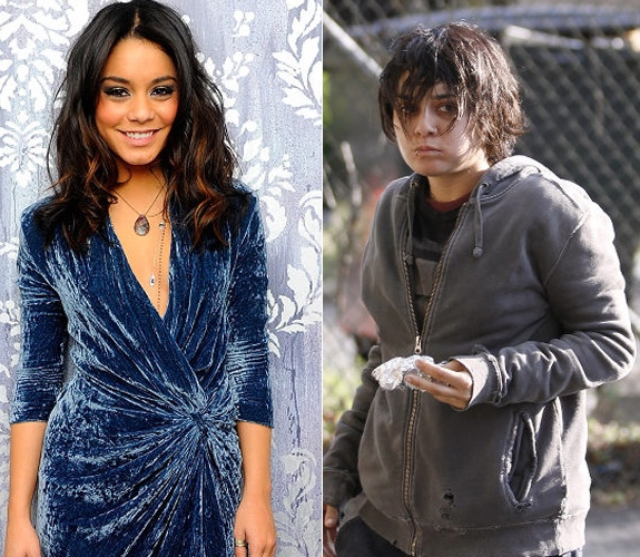 The normally neat and proper Vanessa Hudgens ditched her usual image for a more rugged and worn-out look. She chopped off her hair to play a homeless young woman who is pregnant and is forced to live off garbage.