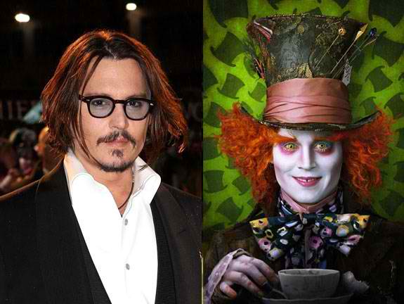 We can't say that there's anything new when it comes to Johnny Depp changing faces. We do love the surprise that comes when we see his new face. For his role as the Mad Hatter, Depp put on a weird red wig and an equally eccentric hat.