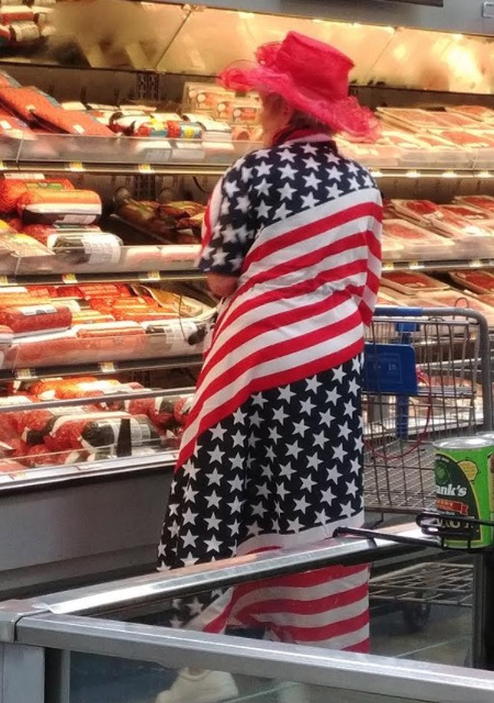 Get your American flags at Walmart and wear them home. Who needs clothes anymore when you can dress in the stars and stripes?