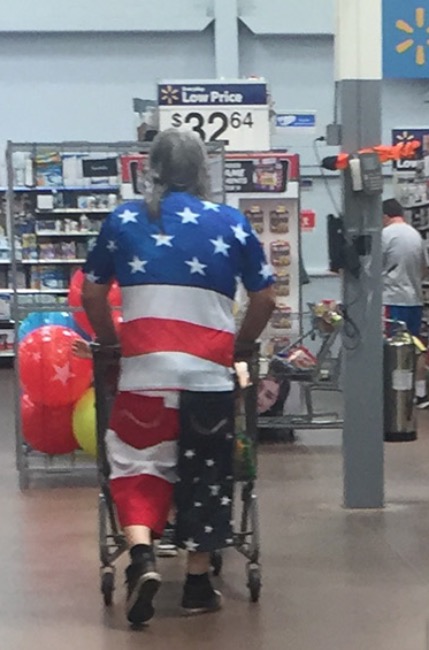 Get your American flags at Walmart. Use them as shorts and pants or even a tablecloth. Feel free to desecrate our flag and be patriotic!