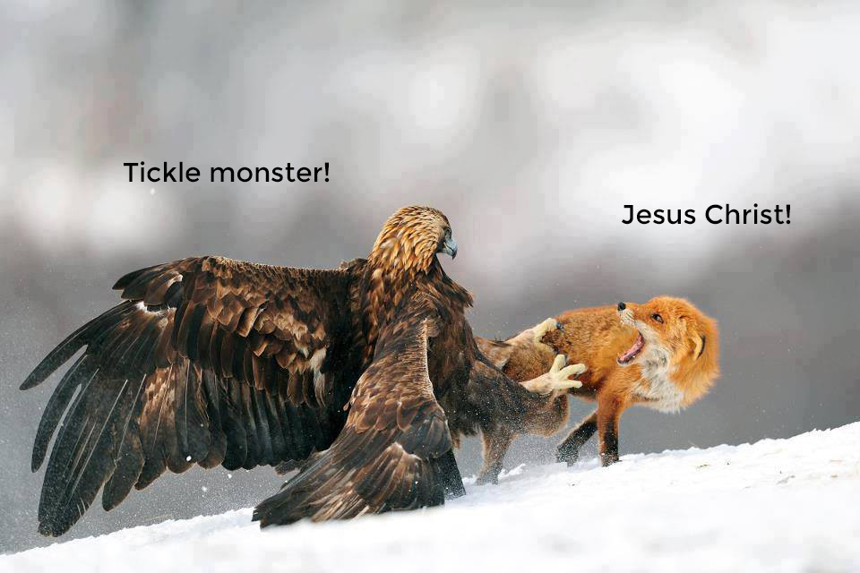 Have you seen the tickle monster lately. No then check this photo out right now. The eagle is a tickle monster. Did you know that cos I didn't know that really. This is hilarious really because the eagle rarely attacks foxes but it did and the photo was clicked at the best moment possible. Hahaahahahahahaha