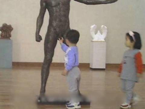 These little children at the museum are quite amused with the greek statue. It seems the boy has to touch it to see if it's real. The little girl is his innocent accomplice.