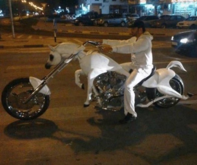 In this case it's a white horse with two wheels and looks like a motorcycle.