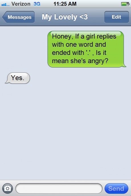 Angry Girl Text Message Ends with Period