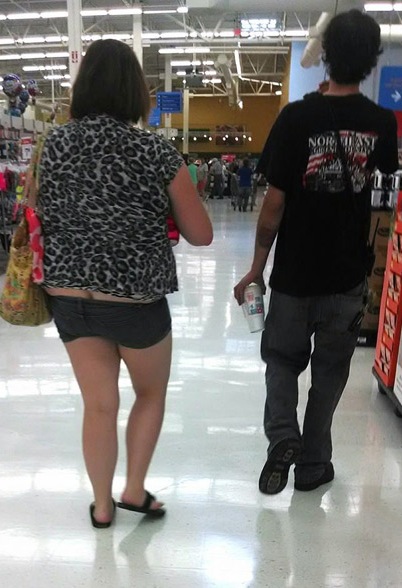 Animal Print Top, Tight Jean Shorts, and Butt Crack at Walmart - Fashion Fail