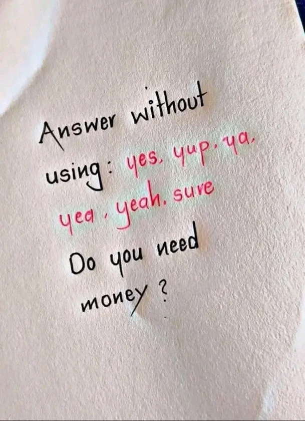 Answer without saying yes, yup, ya, yea, yeah, sure 🙂🙂