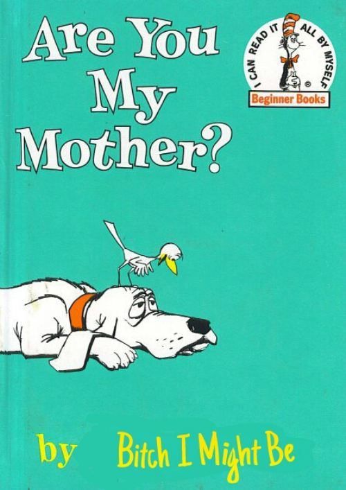 I can read it all by myself "Are you my mother????? By Bitch I Might Be"