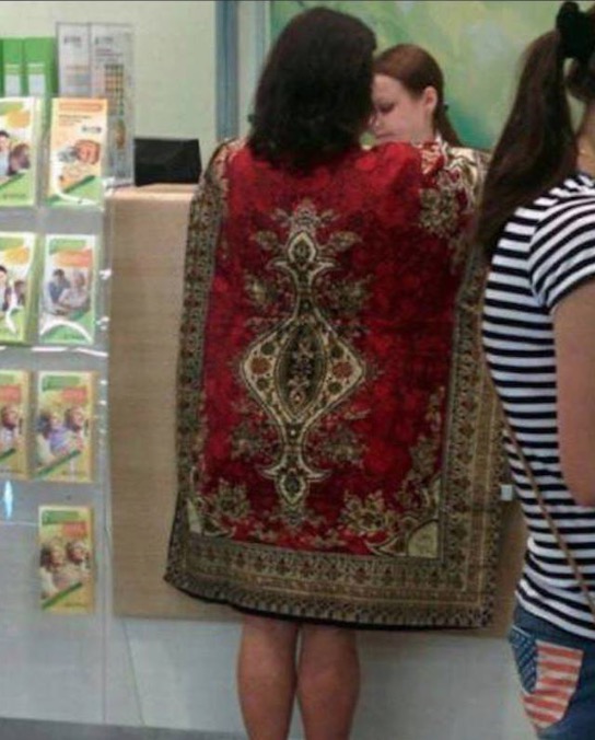 Get your area rugs at Walmart. Just be sure it fits you like a cape.