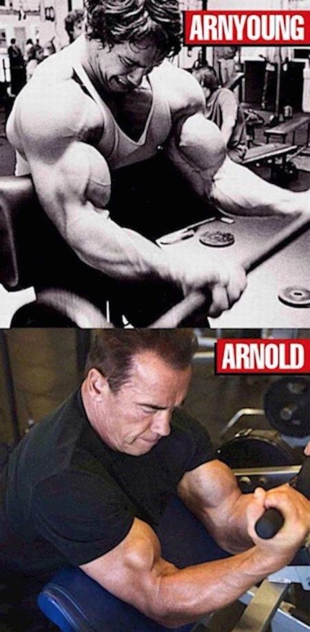 Arnold really hasn't changed much now that he is old haha. Those biceps are still humongous! I wish I could grow old like him!