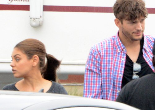 Stopping by to say hi, Ashton Kutcher visited Mila Kunis on the set of “Jupiter Ascending” in Joliet, IL on Wednesday (July 31).