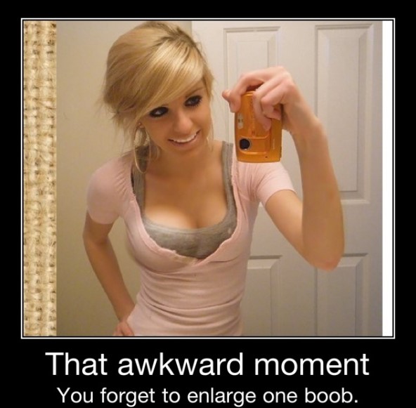 An asymmetrical breast enhancement is not what you're aiming for when you publicize a photo of yourself. So don't forget to enlarge BOTH boobs before you hit 'enter'. Otherwise, you will definitely get the attention you were seeking but for all the wrong reasons.