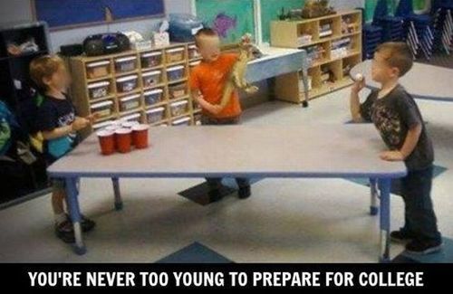 You're never too young to prepare for college. These kids are gonna be beer pong pros when they get to college. That's assuming they actually get into college.